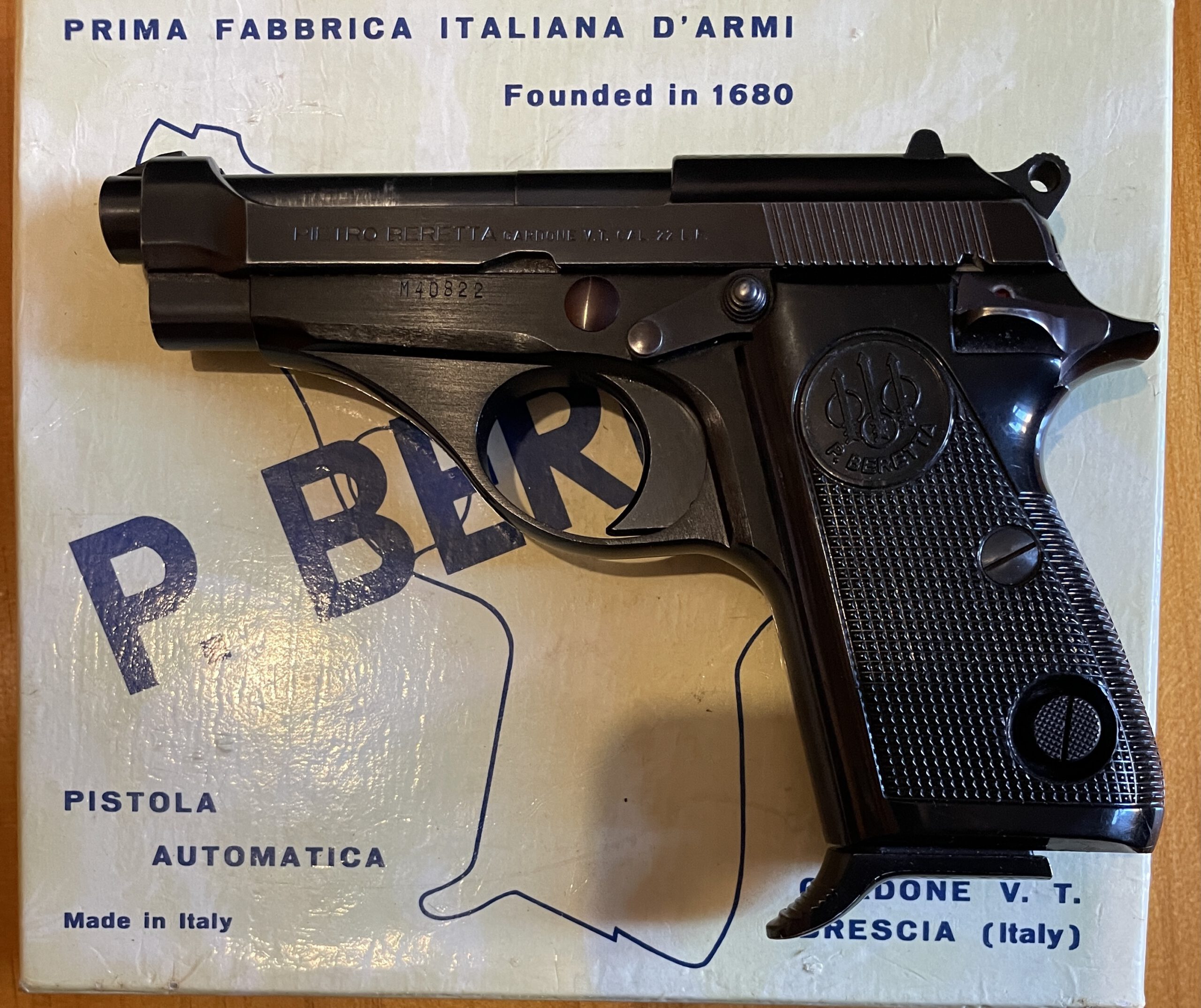 Die Beretta Model 70 .22lfb ist eine kompakte halbautomatische Kleinkaliberpistole aus dem italienischen Traditionshaus Fabbrica d’Armi Pietro Beretta. Sie kombiniert klassische Pistolenmechanik mit zuverlässiger Funktion, ergonomischer Handhabung und sporttauglicher Präzision – ideal für Training, Schießstand-Freizeit und Sammler.