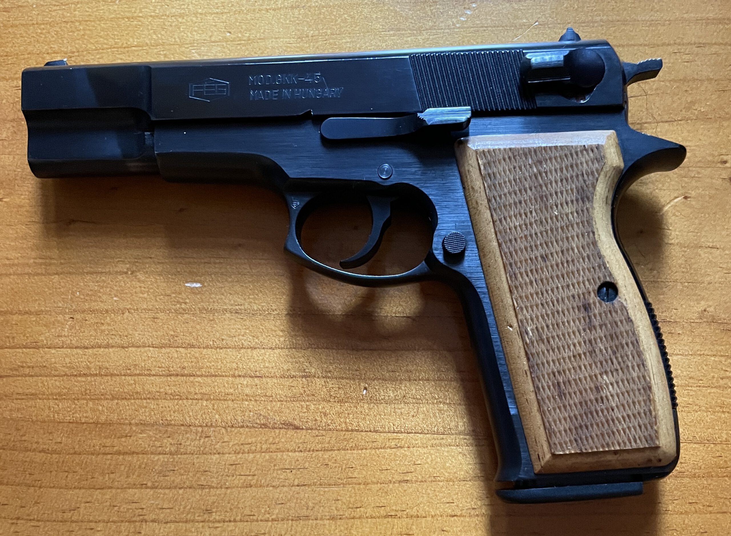 Die FEG Model GGK-45 ist eine halbautomatische Großkaliber-Pistole im Kaliber .45 ACP (Automatic Colt Pistol), gefertigt von Fegyver- és Gépgyár (FEG), einem ungarischen Hersteller mit Tradition in der Pistolenproduktion. Dieses Modell zählt zu den robusten, klassisch aufgebauten Pistolen, die sich durch einfache, funktionale Mechanik und solide Verarbeitung auszeichnen – ideal für Sammler, Schießsportler und Nutzer, die eine zuverlässige Großkaliberpistole schätzen.