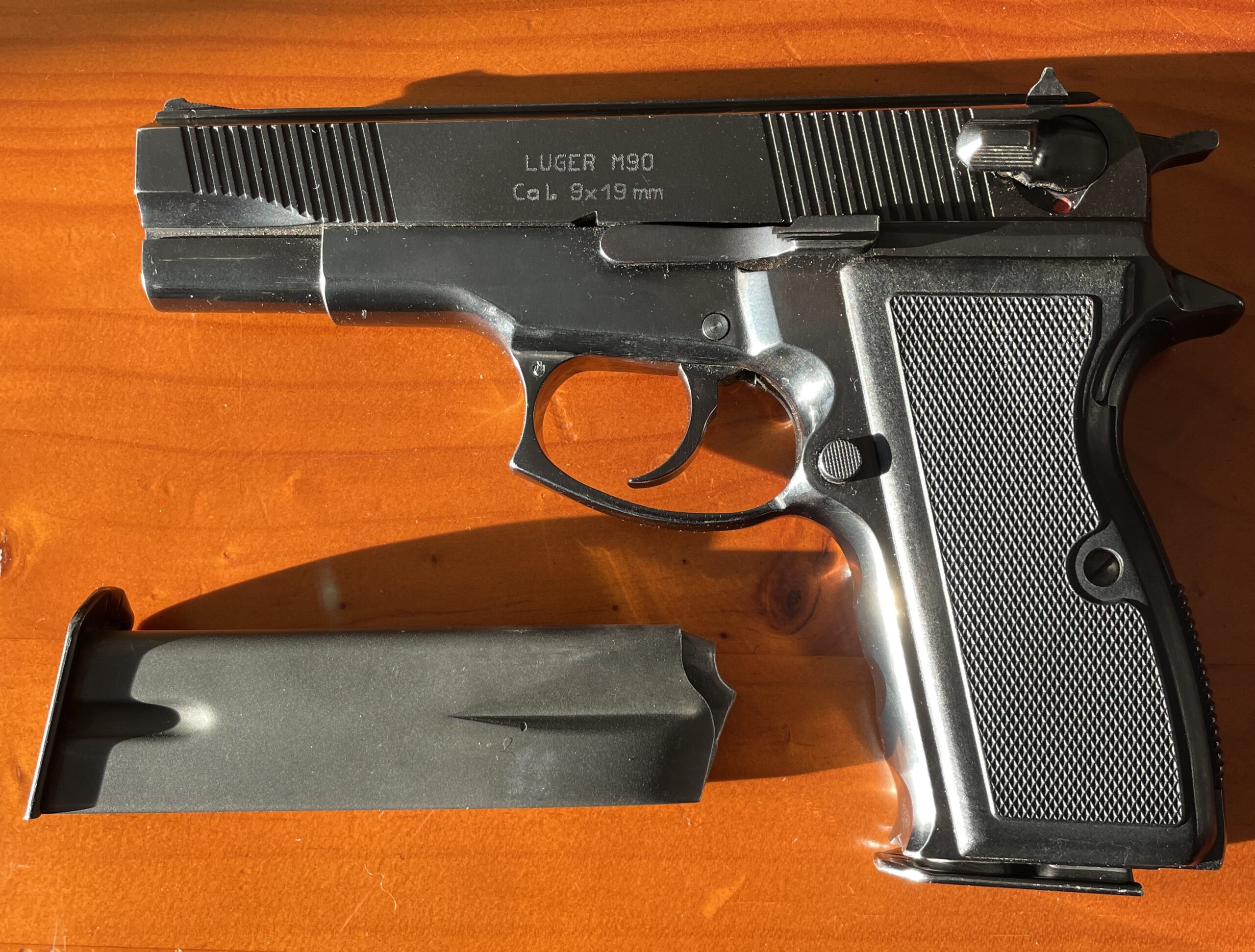 Die Luger M90 – 9×19 ist eine moderne zivile Selbstladepistole, die sich optisch und ergonomisch an klassische Dienstpistolen anlehnt.