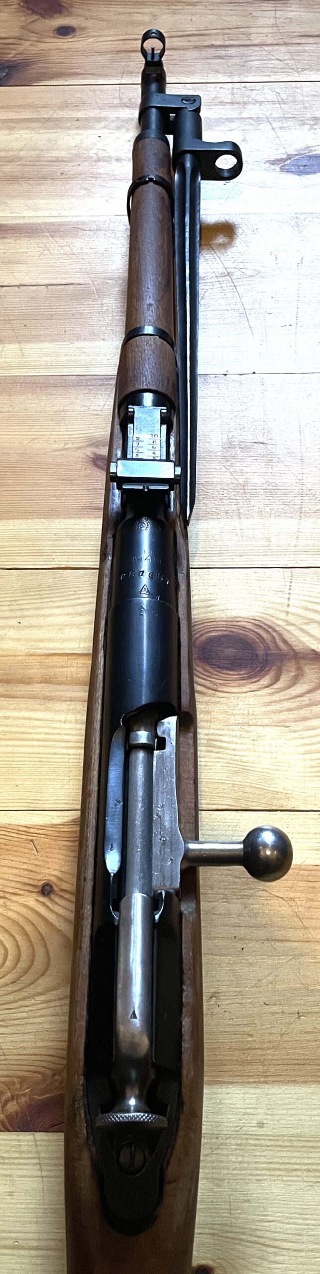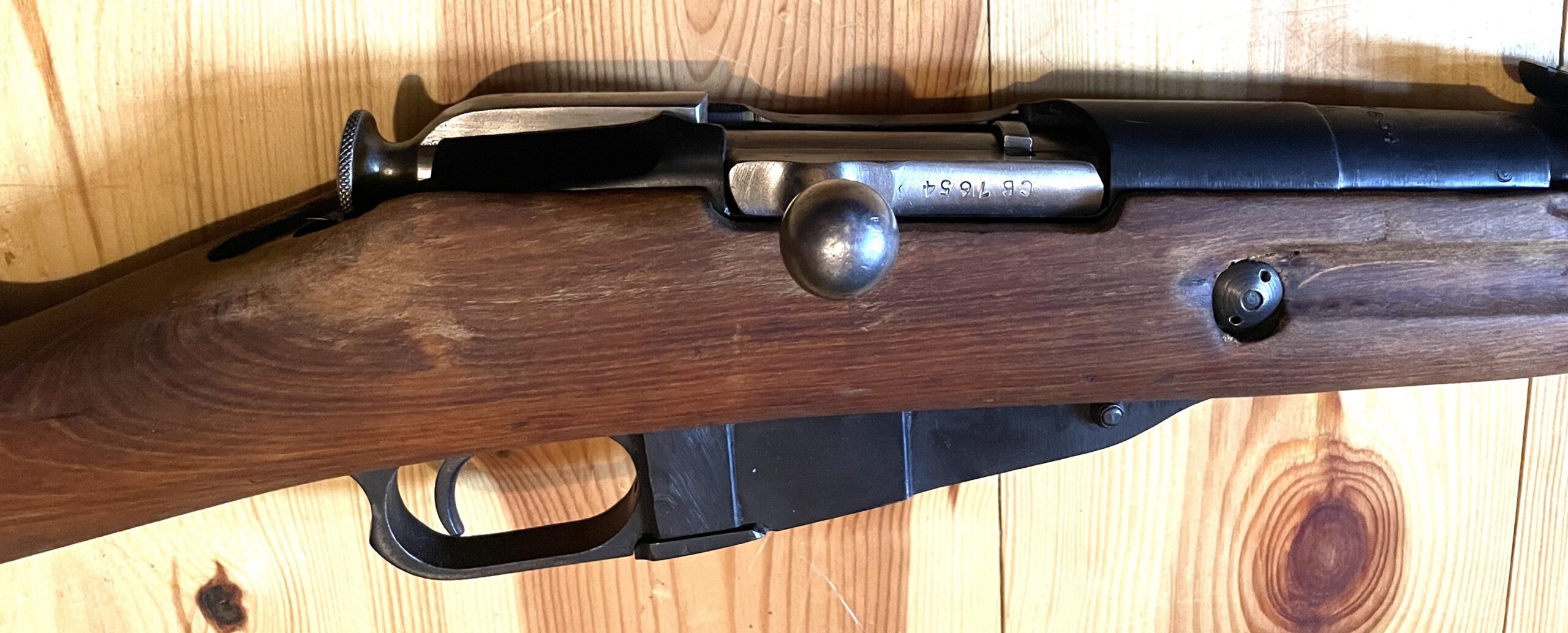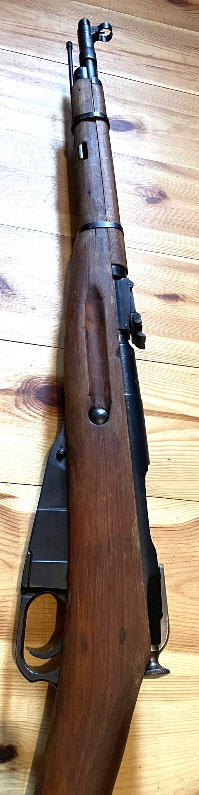 Magazin: Internes, festes Magazin mit Kapazität für fünf Patronen im Kaliber 7,62×54 R.