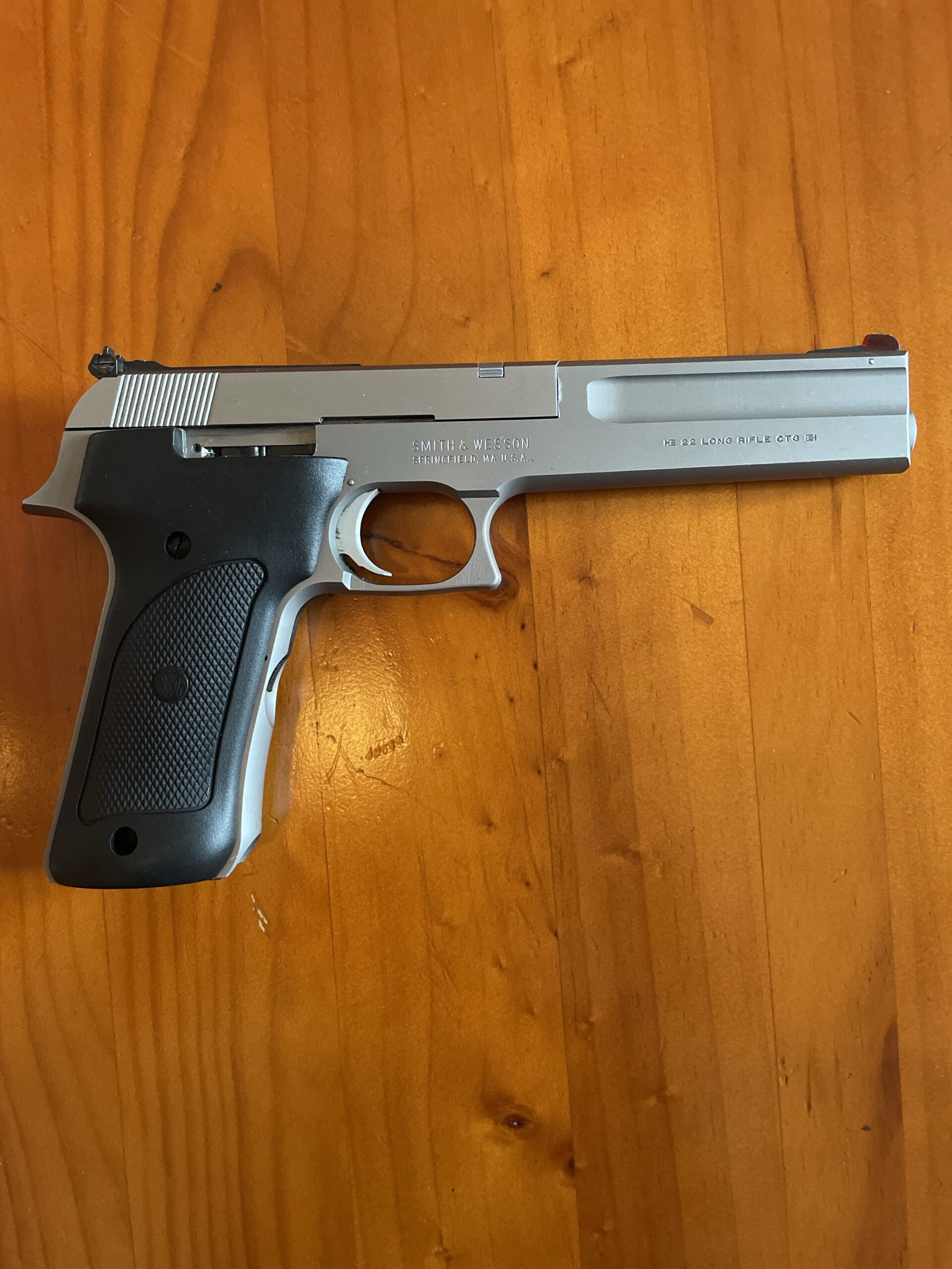 Die Smith&Wesson Model 2206 ist eine robuste halbautomatische Sport- und Zielpistole im Kaliber .22lfb mit einem längeren 6-Zoll-Lauf (ca. 150 mm), gefertigt aus vollständig Edelstahl/rostfreiem Stahl. Sie wurde Anfang der 1990er-Jahre als stabile, präzise rimfire-Pistole eingeführt und bietet einen soliden, schweren Aufbau mit klassischer Mechanik und ergonomischer Handlage, die sich besonders für Schießstand-Training und Sportschießen eignet.