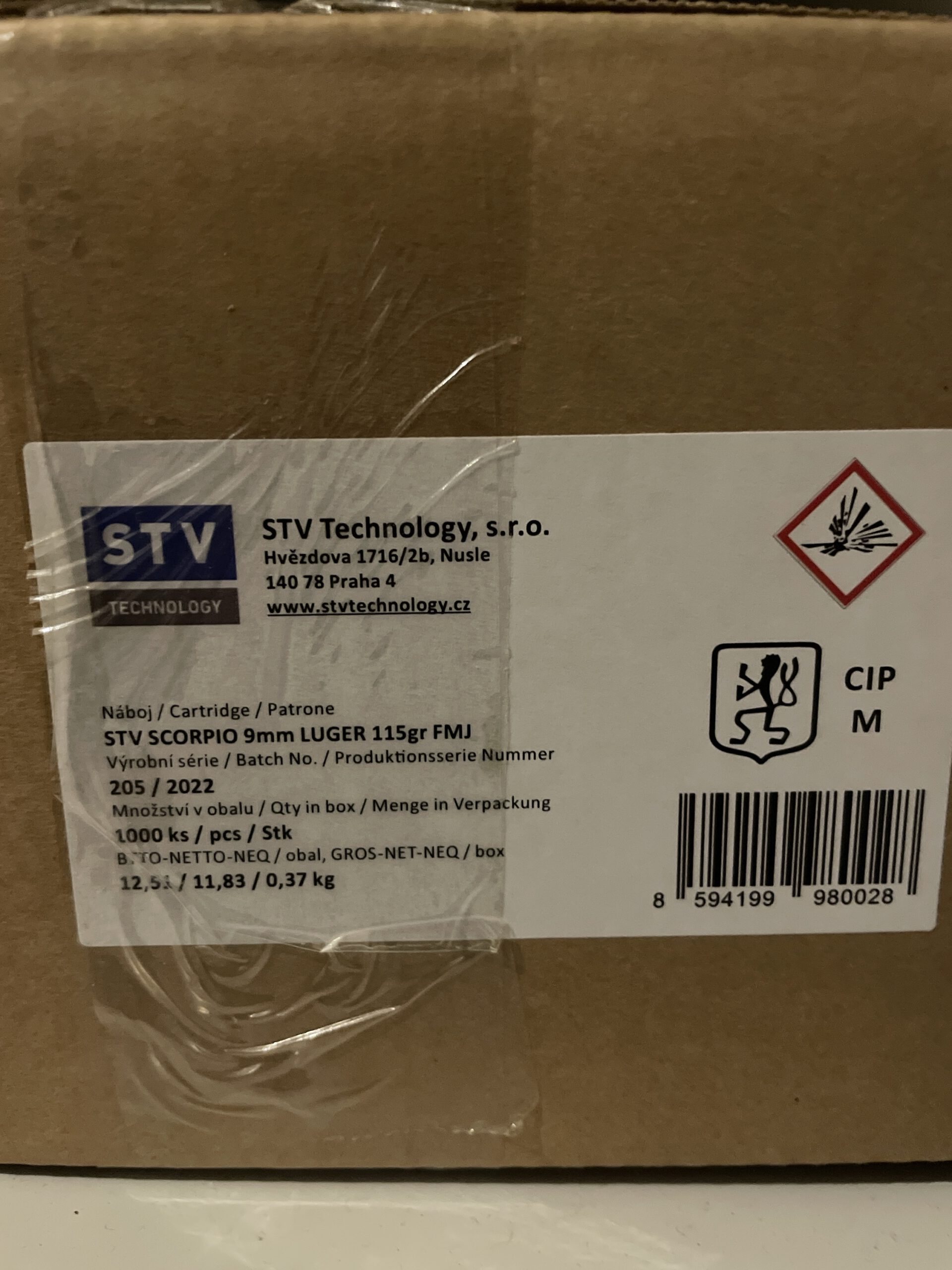 Die STV Scorpio 9mm Luger 115 gr ist eine klassische 9×19 mm Luger-Patrone mit 115 grains (ca. 7,5 g) Vollmantelgeschoss (Full Metal Jacket, FMJ), gefertigt von STV Technology unter der Marke Scorpio. Sie wird nach zivilem CIP-Standard produziert und bietet eine ausgewogene Kombination aus Reichweite, Flugeigenschaften und Zuverlässigkeit für verschiedene Schießanwendungen.